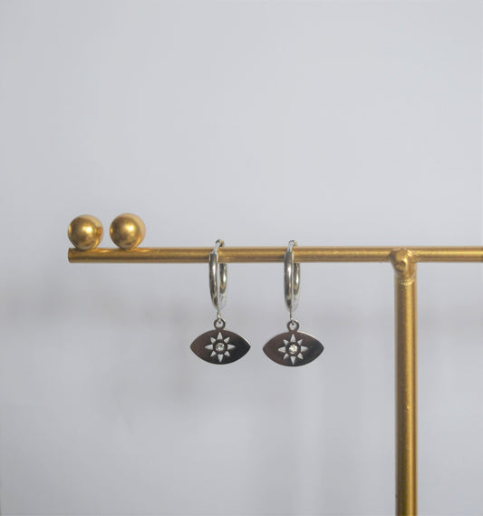 Nymphen Ohrringe mit Auge, Mataki, Evil Eye (silver)